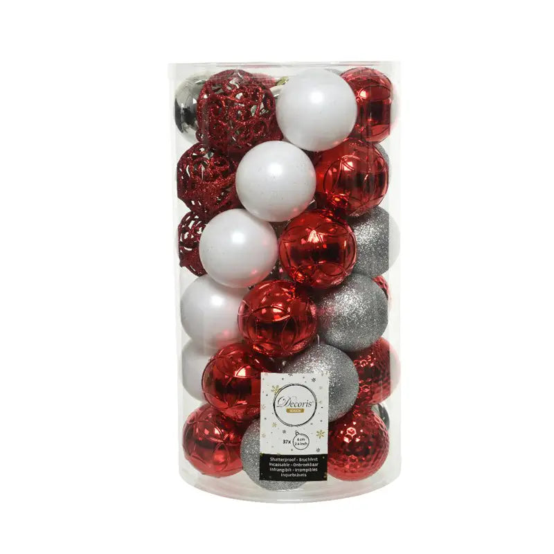 Box 37 Sfere di Natale - Diametro 6 cm - Red White Silver