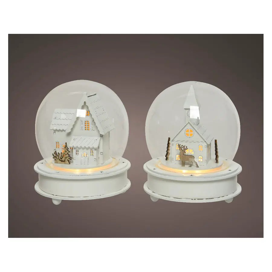 Natale Led Cloche Glass Cloche With House/ Church Rotating With Rotating Effect Bo Indoor 2ass Warm White