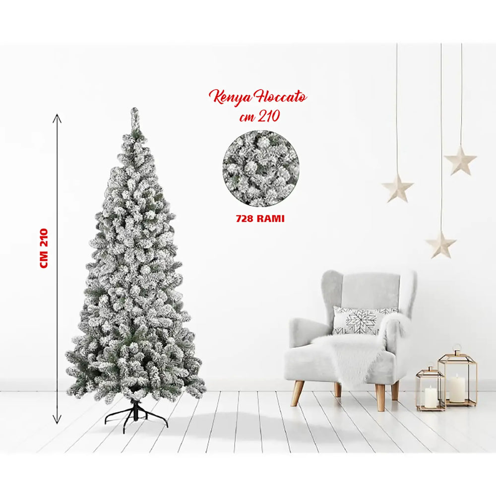 Albero di Natale Kenya Floccato 210 cm - Effetto Neve Realistico