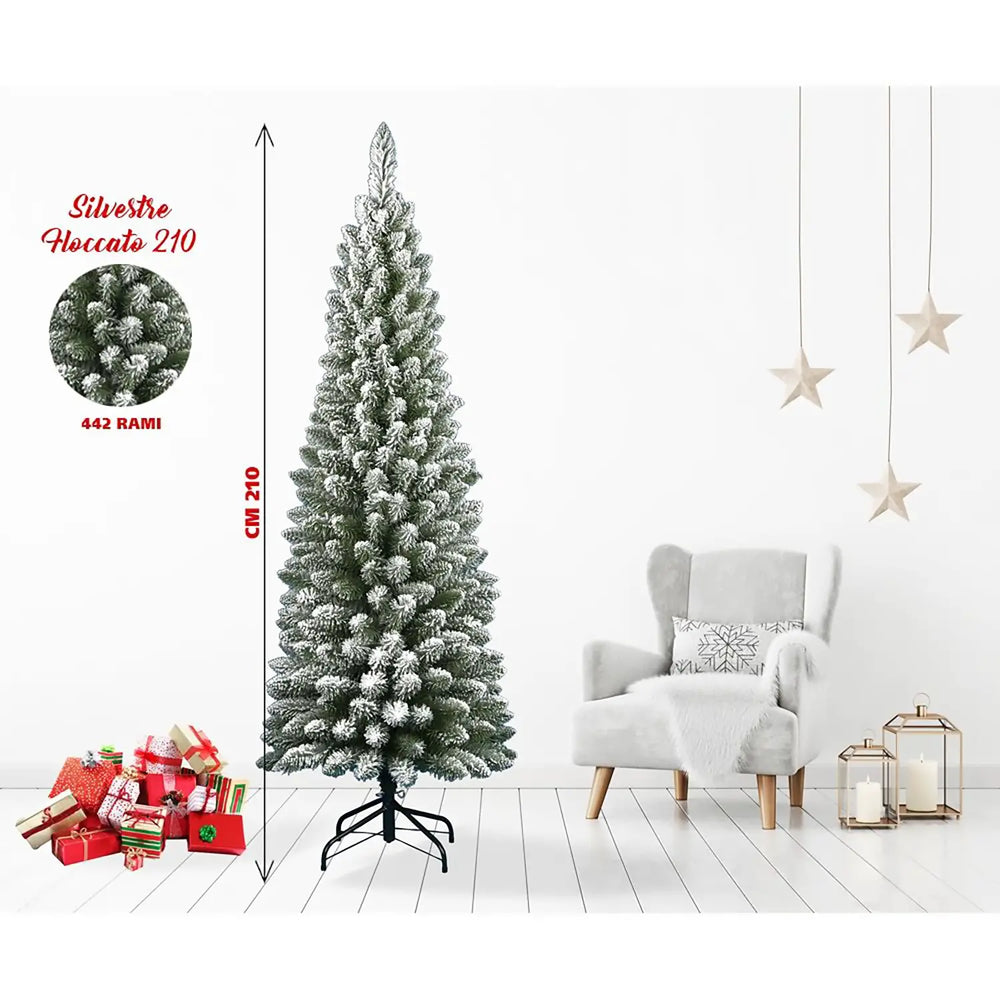 Albero di Natale Silvestre Floccato 210 cm – Slim, Folto e Realistico