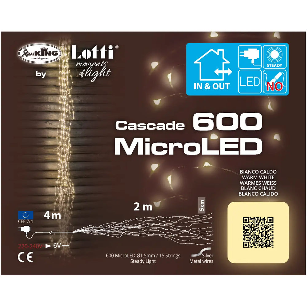 Luci di Natale Lotti - Cascata 600 Micro Led Bianco Caldo - Filo Silver da 2 metri