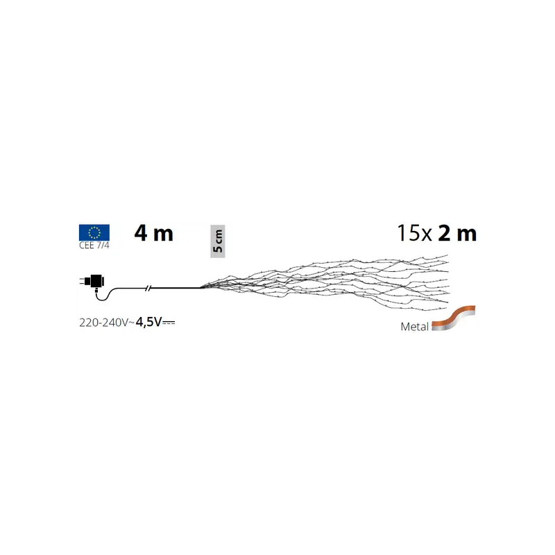 ### **Luci di Natale Lotti – Cascata 600 Micro LED Bianco Caldo – Filo Silver da 2 Metri** Dona un tocco di **magia e raffinatezza** ai tuoi ambienti con la **Cascata Lotti da 600 MicroLED Bianco Caldo**. Con il suo design elegante e la luminosità delicata, questa cascata luminosa trasforma ogni spazio in un ambiente **accogliente e suggestivo**, perfetto per il Natale o per decorazioni tutto l’anno. --- ### **Caratteristiche Principali:** * **600 MicroLED Bianco Caldo:** Ogni LED da Ø1,5 mm emette una luce calda e soffusa, creando un’atmosfera avvolgente e rilassante. * **Design a Cascata:** Composta da **15 stringhe luminose** distribuite su un’altezza di **2 metri**, ideale per pareti, finestre o allestimenti scenografici. * **Filo Silver Elegante:** Il cavo in metallo argentato dona un tocco contemporaneo e raffinato, perfetto per interni moderni o decorazioni natalizie chic. * **Cavo di Alimentazione Trasparente:** Lunghezza **4 metri**, per una posa discreta e ordinata senza impattare sull’estetica dell’ambiente. * **Confezione Premium:** Fornita in una **scatola di lusso colorata**, ideale anche come **idea regalo elegante e originale**. --- ### **Specifiche Tecniche:** * **Numero di LED:** 600 MicroLED. * **Altezza Totale:** 200 cm. * **Numero di Stringhe:** 15. * **Colore della Luce:** Bianco Caldo. * **Filo:** Silver (argento). * **Cavo di Alimentazione:** 4 metri trasparente. * **Trasformatore a Bassa Tensione:** Sicuro per uso interno ed esterno. * **Codice Articolo:** XKC M15X40 S 600-F. --- ### **Vantaggi dell’Utilizzo:** * **Illuminazione Sofisticata:** La luce bianco caldo dona eleganza e comfort visivo. * **Versatilità Totale:** Perfetta per **decorazioni domestiche, vetrine, eventi o matrimoni**. * **Sicura ed Efficiente:** Bassa tensione e consumi ridotti, ideale anche per un uso prolungato. * **Regalo di Classe:** Grazie alla confezione di pregio, è un’ottima idea regalo per chi ama l’arredo luminoso e raffinato. --- ### **Consigli per l’Uso:** 1. Appendi la cascata su **pareti, finestre o testiere** per un effetto scenografico e luminoso. 2. Combinala con altre **decorazioni Lotti** per creare composizioni luminose armoniose. 3. Ideale anche per **illuminare ambienti interni durante eventi speciali** come cene, feste o cerimonie. --- ### **Perché Sceglierla:** La **Cascata Lotti 600 MicroLED Bianco Caldo** unisce **eleganza, qualità e sicurezza**, offrendo un’illuminazione raffinata e versatile. Grazie al **filo silver**, alla **luce calda** e alla **scatola regalo esclusiva**, è la scelta perfetta per chi desidera decorazioni **di design e ad alto impatto visivo**. **Illumina i tuoi spazi con stile e trasforma ogni ambiente in un angolo di pura magia luminosa.**