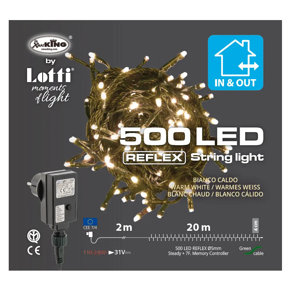 Luci di Natale Lotti - Catena 500 Led Bianco Caldo - Filo Verde da 20 metri