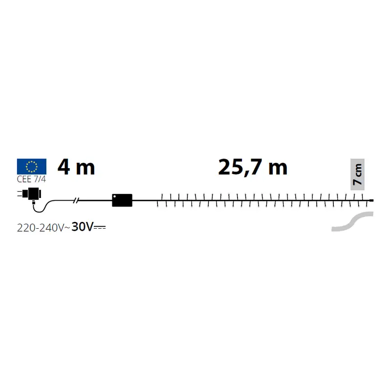 ### **Luci di Natale Lotti – Catena 360 MiniLED Bianco Freddo – Filo Trasparente da 25,7 Metri** Dona un tocco di **freschezza e modernità** ai tuoi spazi con la **catena luminosa Lotti da 25,7 metri**. Con 360 MiniLED bianco freddo, trasforma alberi, balconi, giardini o angoli della casa in ambienti eleganti e contemporanei. --- ### **Caratteristiche Principali:** * **360 MiniLED Ø3mm Reflex:** Diffondono una **luce bianco freddo cristallina**, perfetta per atmosfere moderne e luminose. * **Lunghezza Totale:** 25,7 metri di catena + 4 metri di cavo di alimentazione, ideale per decorazioni di medie dimensioni. * **Timer Memory Controller:** 8 giochi di luce selezionabili e timer On/Off da 8 a 16 ore per un’illuminazione personalizzata. * **Pulsante Luminoso:** Permette di disattivare facilmente il timer per un utilizzo pratico e immediato. * **Cavo Trasparente:** Installazione discreta che valorizza solo la brillantezza dei LED. * **Sicurezza Garantita:** Trasformatore a bassa tensione incluso per un utilizzo sicuro. * **Uso Esterno:** Resistente agli agenti atmosferici, perfetta per giardini, terrazze e balconi. * **Confezione Lusso:** Presentata in una scatola elegante (XKC Art. XLED TLG 360-C), ideale anche come regalo. --- ### **Vantaggi dell’Utilizzo:** * **Atmosfera Fresca e Moderna:** Il bianco freddo dei MiniLED crea ambienti eleganti e luminosi. * **Efficienza Energetica:** LED a basso consumo per un’illuminazione duratura e sostenibile. * **Decorazione Versatile:** Perfetta per alberi, balconi, giardini o qualsiasi spazio esterno o interno. * **Sicura e Resistente:** Ideale per resistere a pioggia, freddo e altre condizioni climatiche. * **Idea Regalo Elegante:** Confezione raffinata pronta da donare o utilizzare nelle decorazioni. --- ### **Consigli per l’Uso:** 1. Distribuisci uniformemente la catena per ottenere un effetto luminoso omogeneo. 2. Imposta il timer per accensione e spegnimento automatico, risparmiando energia. 3. Conserva la catena sulla bobina inclusa in luogo asciutto quando non in uso. --- ### **Perché Sceglierla:** La **Catena 360 MiniLED Bianco Freddo Lotti** è la scelta ideale per chi desidera **decorazioni luminose moderne, eleganti e sicure**. Con il timer programmabile, gli 8 giochi di luce e il filo trasparente, **porta un tocco di stile e freschezza in ogni ambiente**, rendendo le tue serate e feste davvero speciali. **Illumina i tuoi spazi con la luce cristallina dei MiniLED Lotti!**