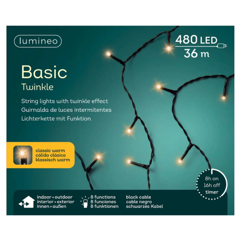 Luci di Natale Lumineo Basic - 480 Led Luce Calda - Filo Nero da 36 metri