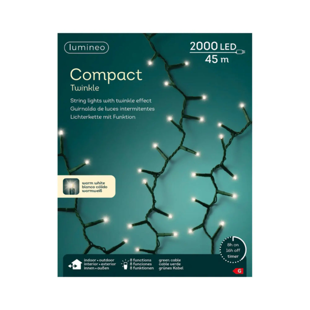 Luci di Natale Lumineo Compact - 2000 Led Bianco Caldo - Filo Verde da 45 metri