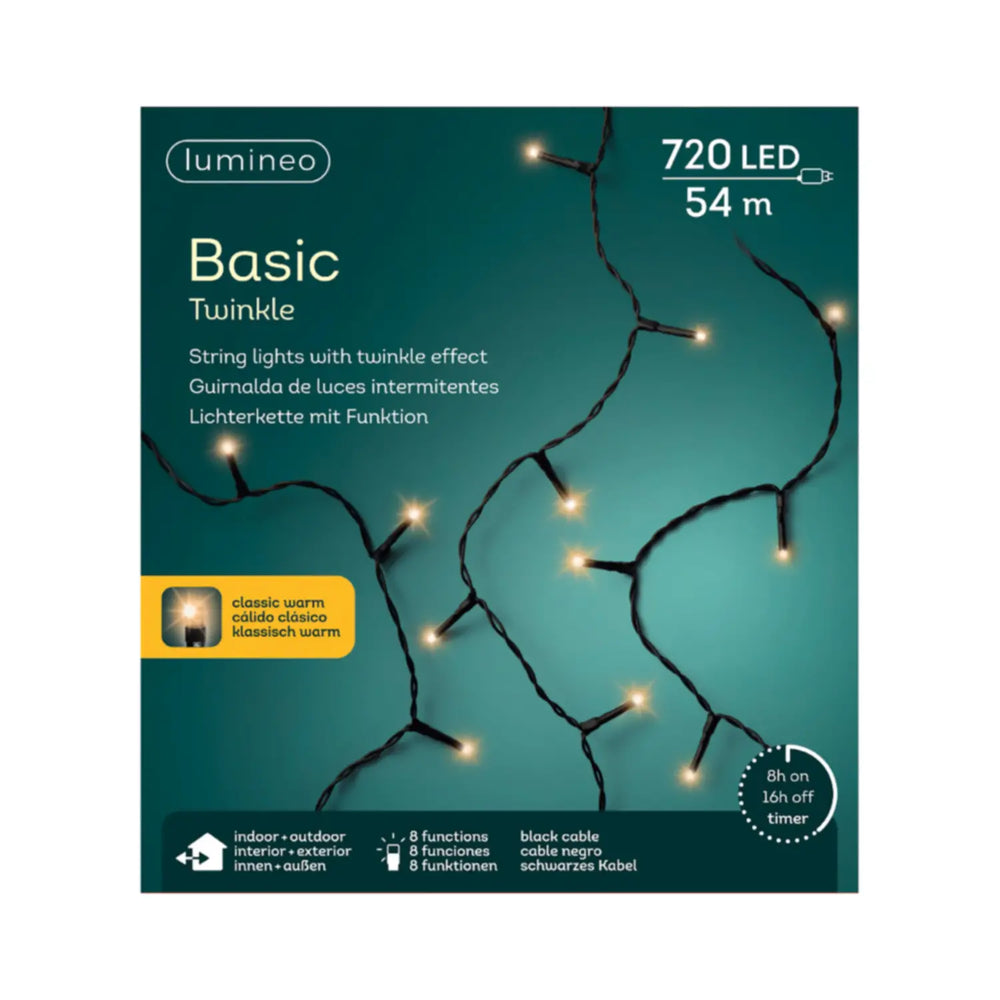 Luci di Natale Lumineo Basic Twinkle - 720 Led Bianco Caldo - Filo Nero da 54 metri