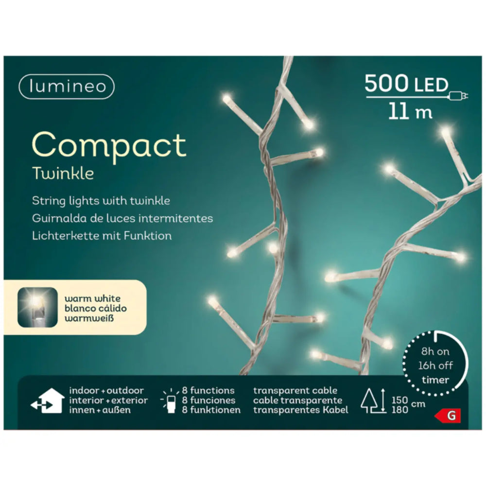 Luci di Natale Lumineo Compact Twinkle - 500 Led Bianco Caldo - Filo Trasparente da 11 metri