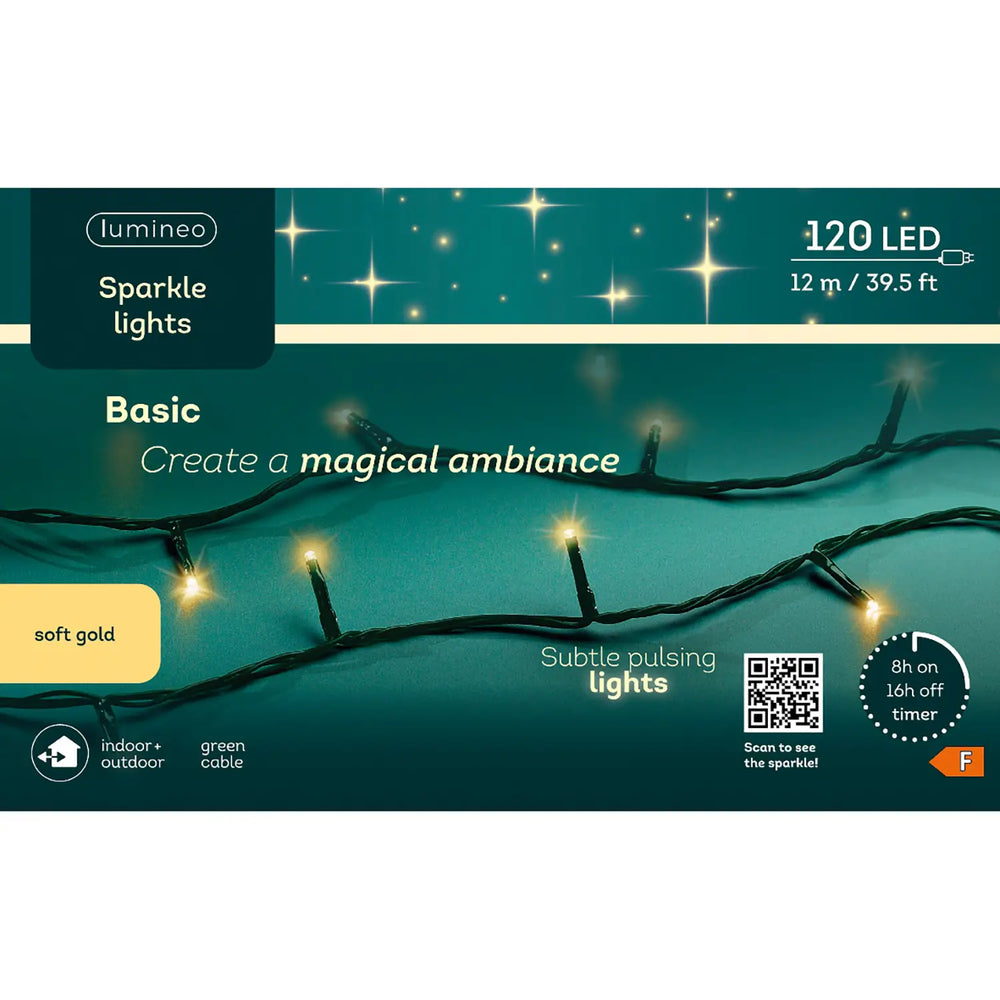 Luci di Natale Lumineo Sparkle Lights - 120 Led Soft Gold - Filo Verde da 12 metri