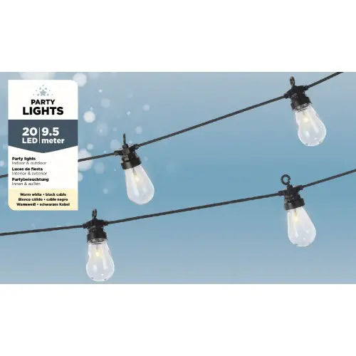 Luci Lumineo Party Lights - 20 LED Bianco Caldo - Filo Nero da 9,5 Metri