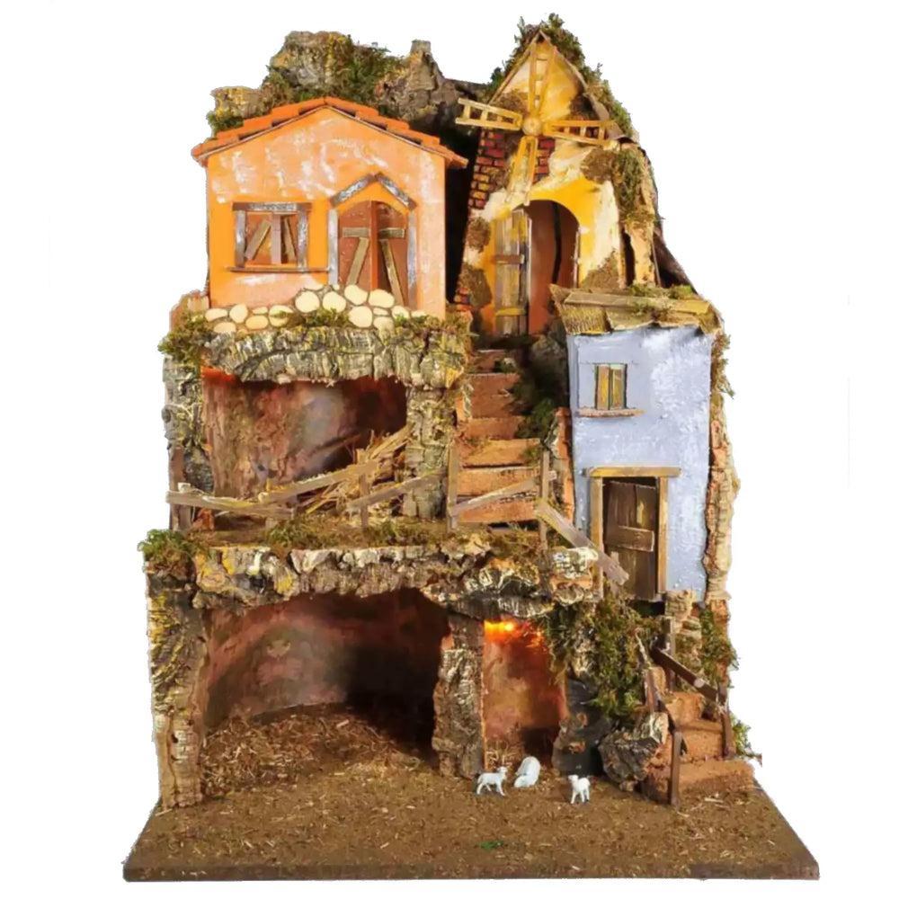 Presepe con Luci e Mulino a Vento: 45x52x70 cm, Motoriduttore