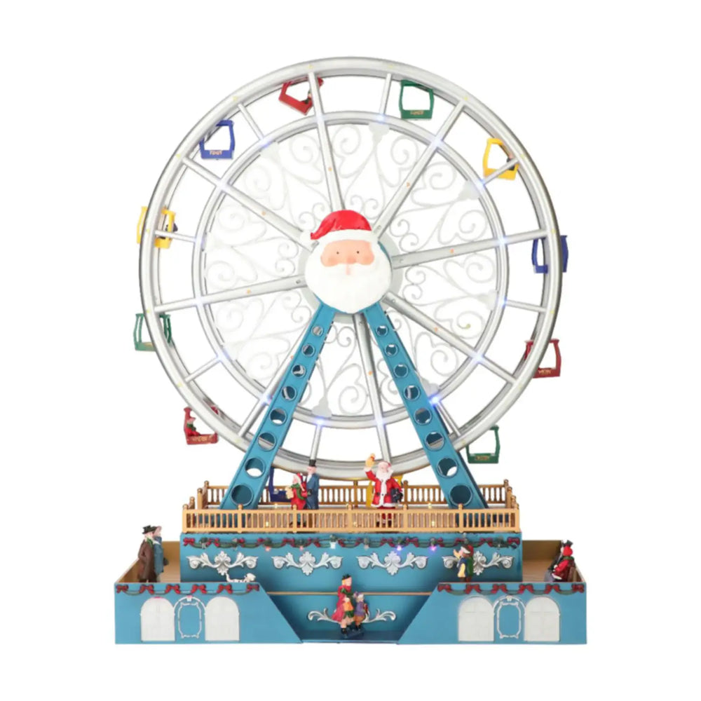 Ruota Panoramica Animata Natalizia con Adattatore e LED, Blu Argento