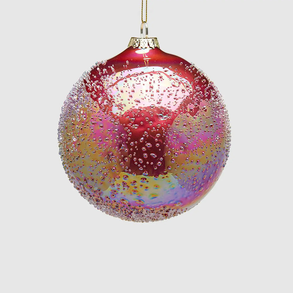 Addobbo Palla Vetro Rossa Microbolle D12 Cm
