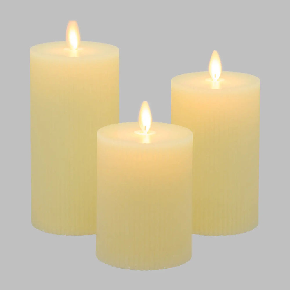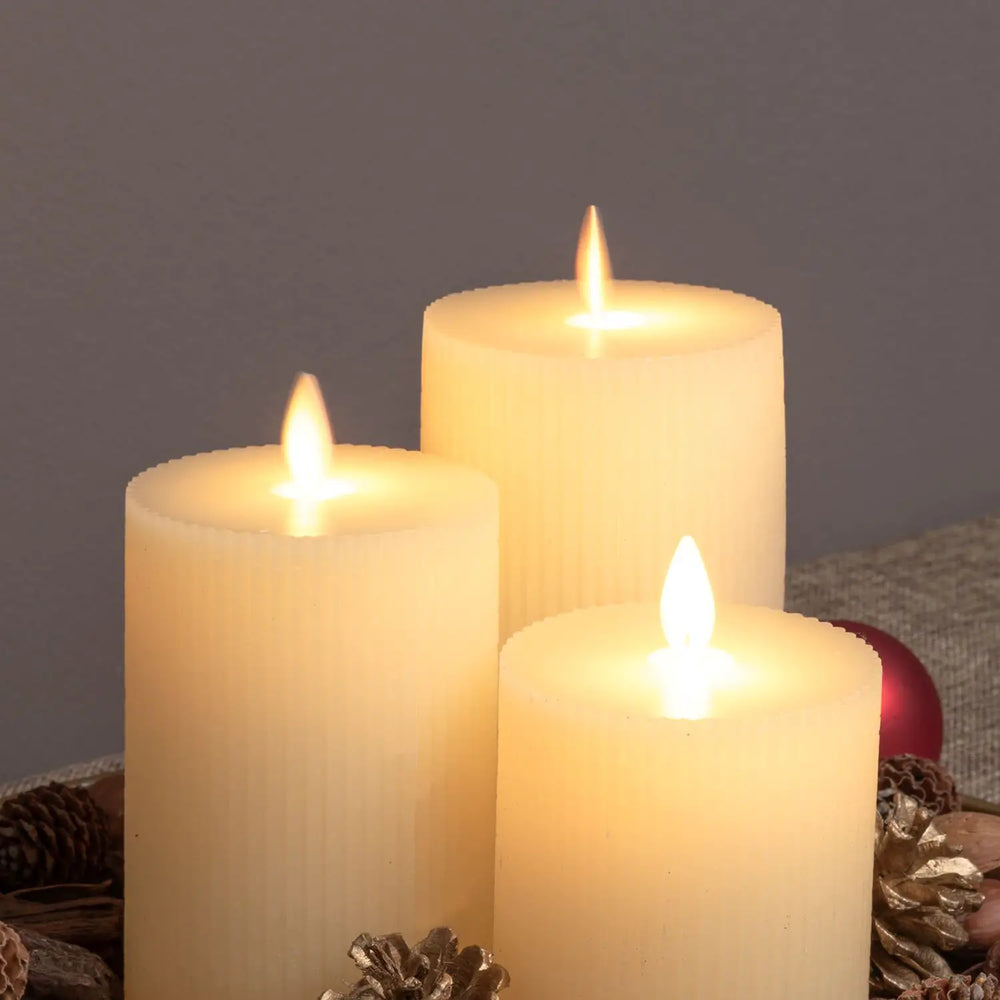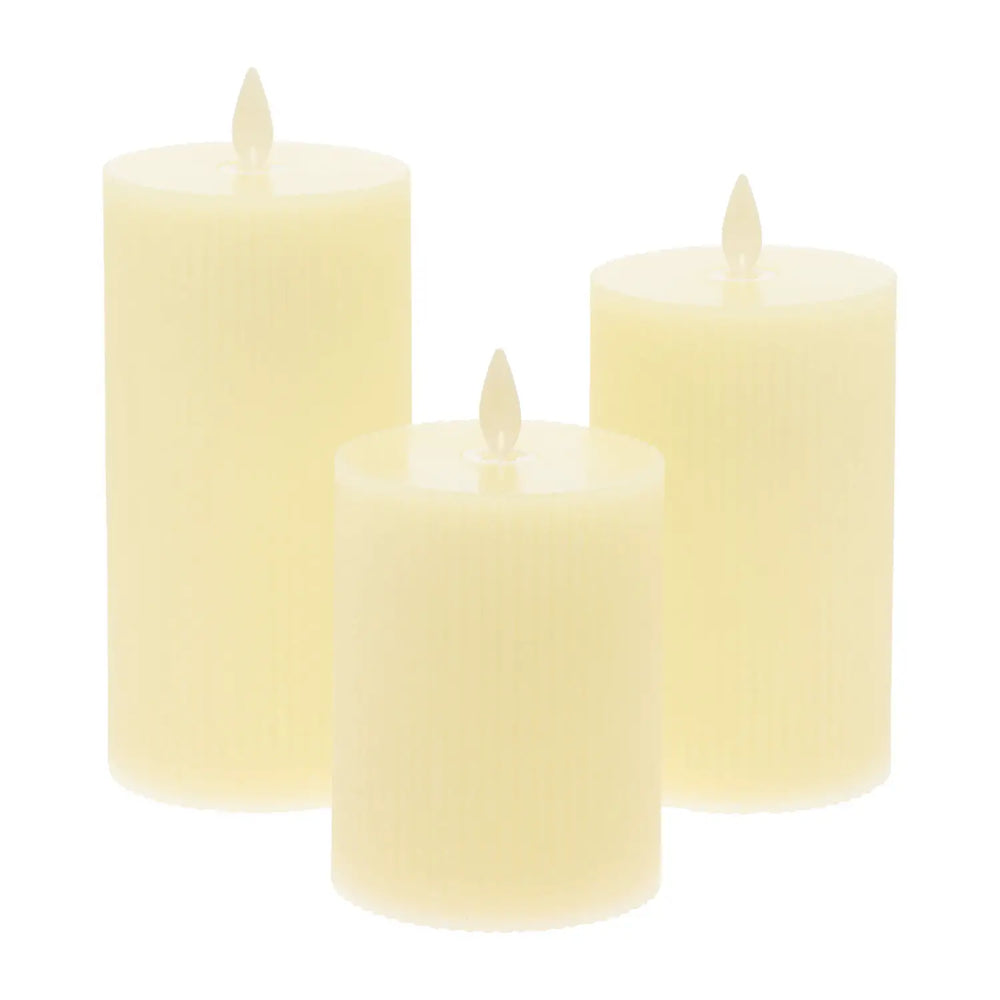 Set 3 Candele Cilindriche MF Moving Flame a Coste aVORIO