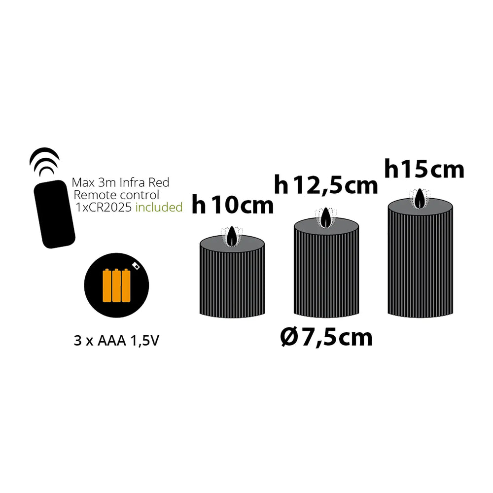 Set 3 Candele Cilindriche MF Moving Flame a Coste Tortora