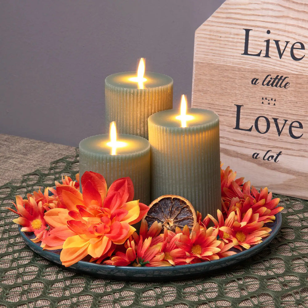 Set 3 Candele Cilindriche MF Moving Flame a Coste Verde