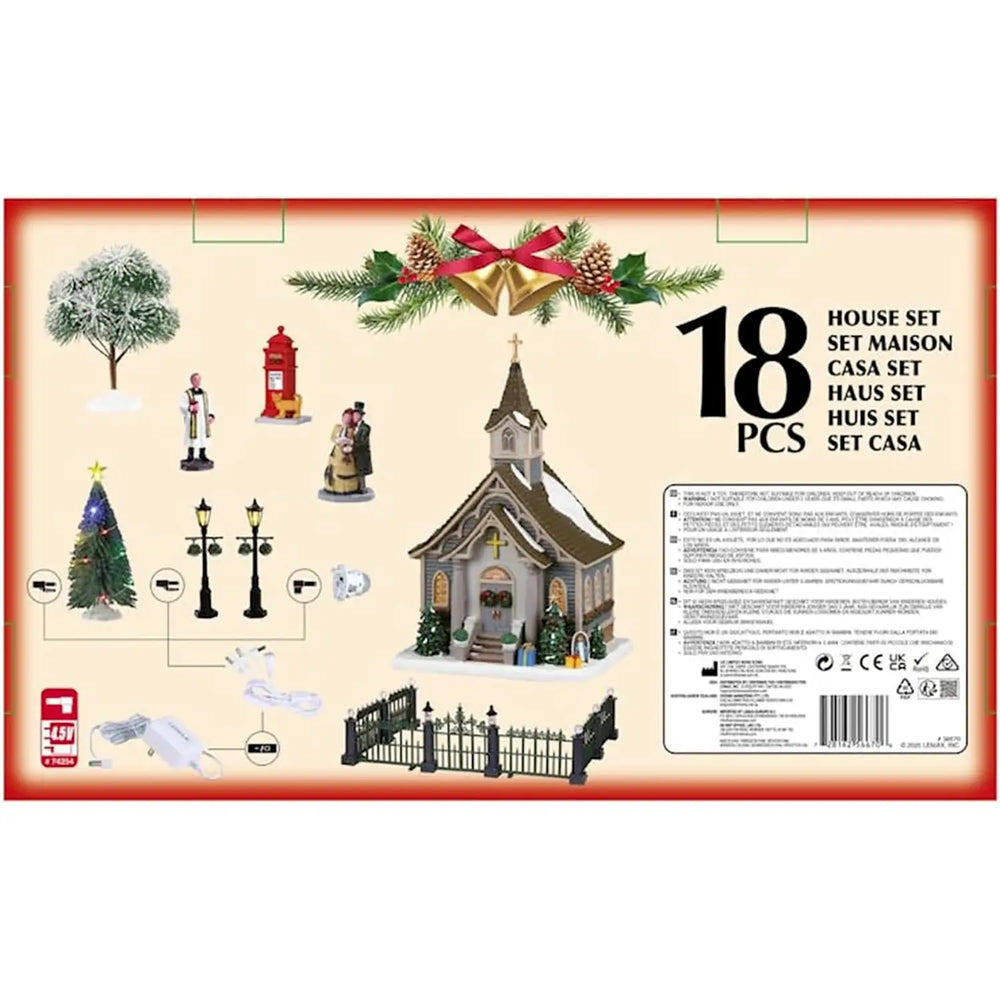 Small Town Church Set Lemax – Chiesa Illuminata con Scene Natalizie