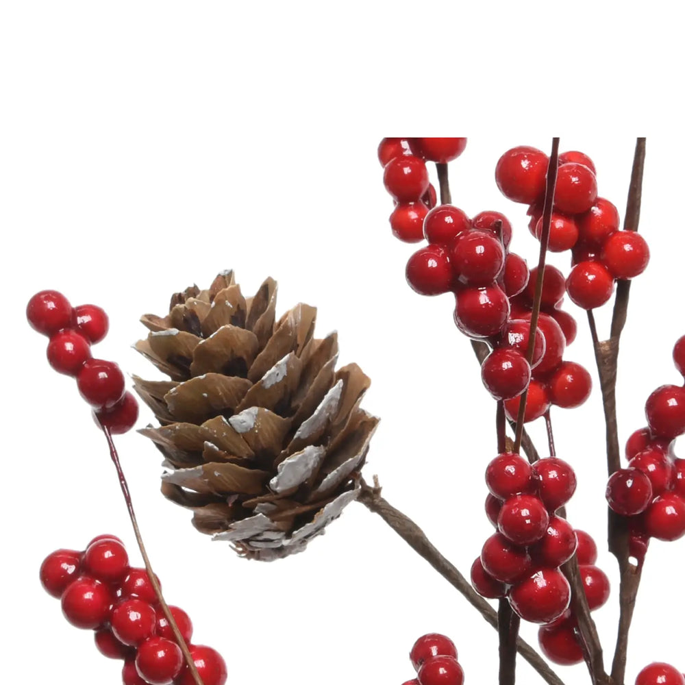 Stelo Decorativo Natale Con Bacche Rosse E Pigne Innevate
