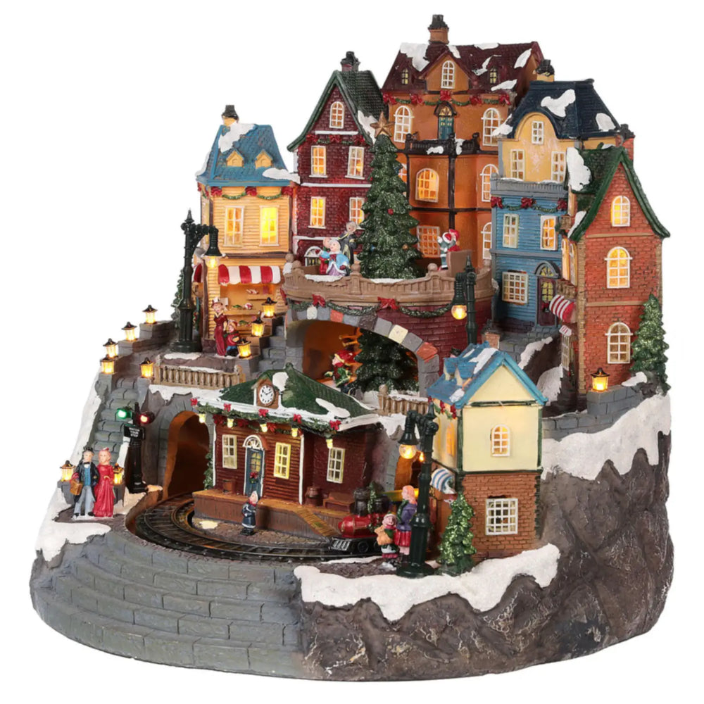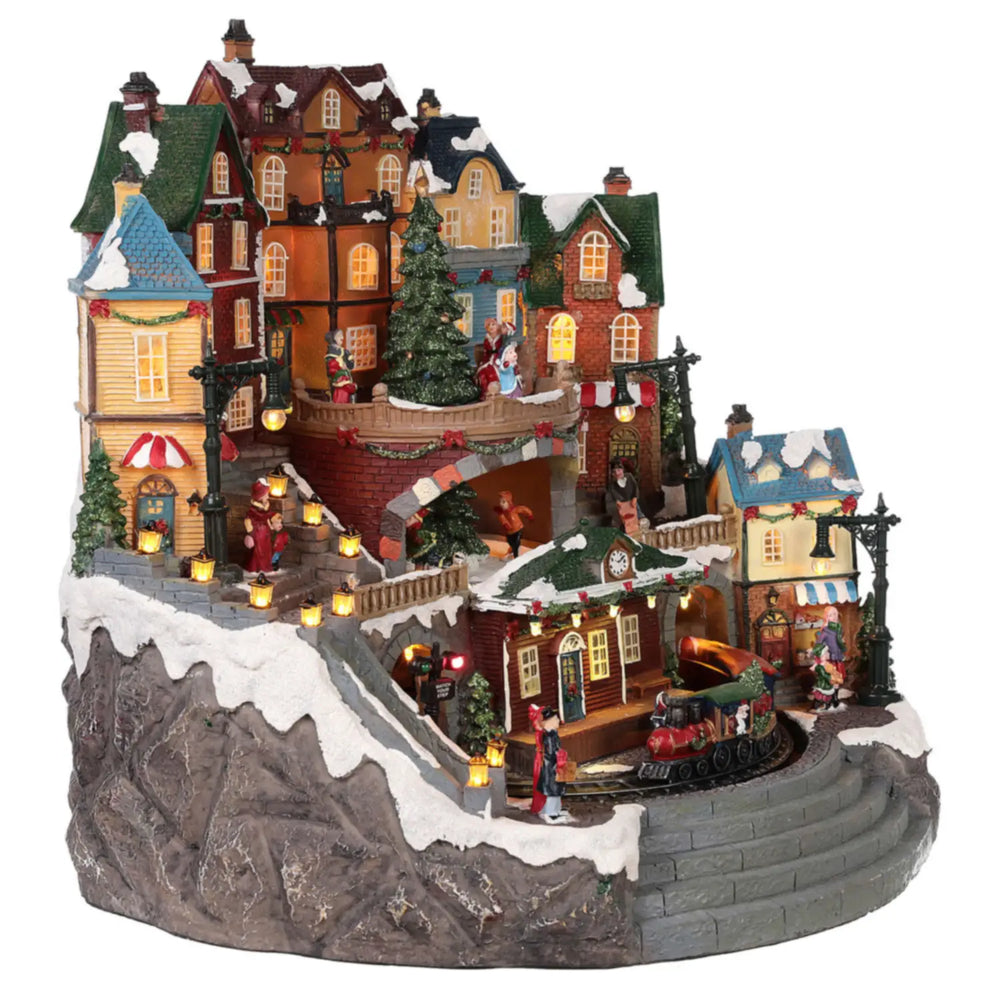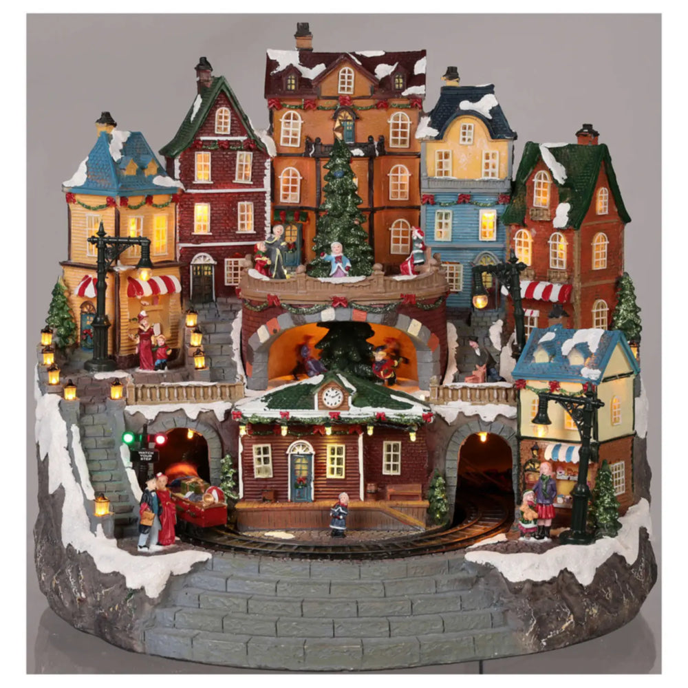 Villaggio Città con Treno Movimento Musiche e Luci Led Adattatore Incluso