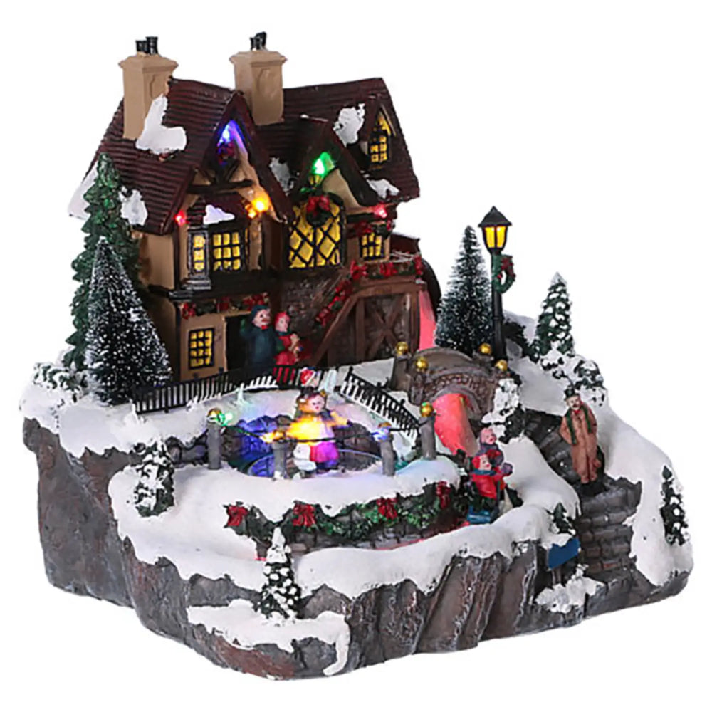 Villaggio con Pattinatori Musiche e Luci Led Adattatore Incluso